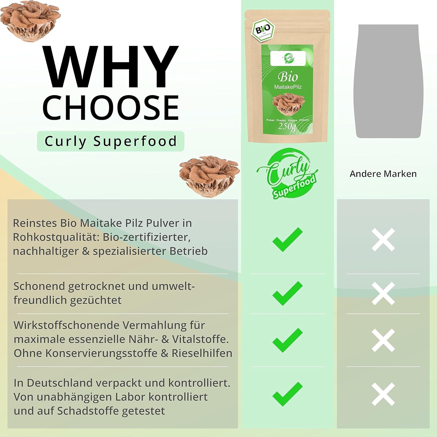 Der Maitake-Pilz wird aufgrund seiner potenziellen gesundheitsfördernden Eigenschaften sowohl in der traditionellen als auch in der modernen alternativen Medizin geschätzt. Er soll unter anderem die Immunfunktion stärken, den Blutdruck senken und die Verdauung unterstützen. Darüber hinaus wird ihm nachgesagt, dass er das allgemeine Wohlbefinden steigern kann. Viele Menschen nehmen Maitake-Pilz-Produkte als Nahrungsergänzungsmittel ein, um von diesen Vorteilen zu profitieren. Es ist jedoch wichtig, vor der Einnahme von Maitake-Pilz-Produkten einen Arzt oder einen qualifizierten Gesundheitsfachmann zu konsultieren, um mögliche Wechselwirkungen oder Nebenwirkungen zu vermeiden.Zutaten:100% Maitake Pulver | Laborgeprüft. Bio-Kontrollnr. | DE-ÖKO 007